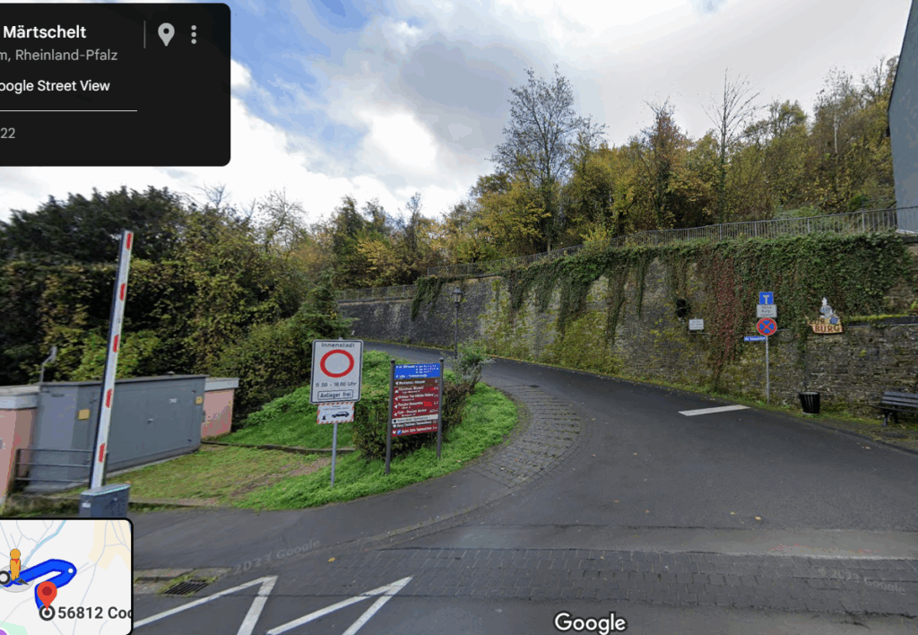 In Cochem geht auf Höhe der Adresse ‚In der Märtschelt 11‘ eine Straße ab, die hoch zu den Parkplätzen führt, die Straße ‚Am Tummelchen‘.