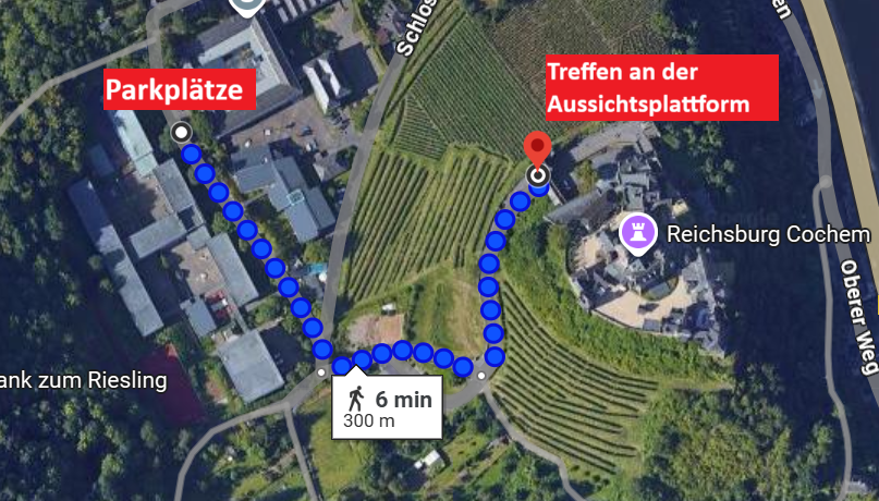Ihr parkt entweder auf dem Parkplatz des Martin-von-Cochem- Gymnasiums oder gegenüber, an der Realschule plus Cochem. Laut Aussage der Burgverwaltung werden diese Parkplätze immer bei Hochzeiten genutzt.